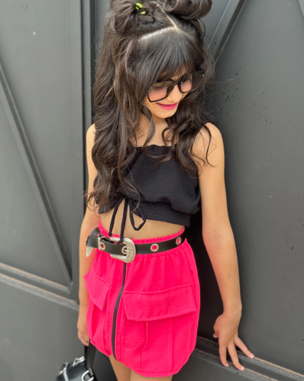 Conjunto de top preto e saia cargo neon ( opções de cor)