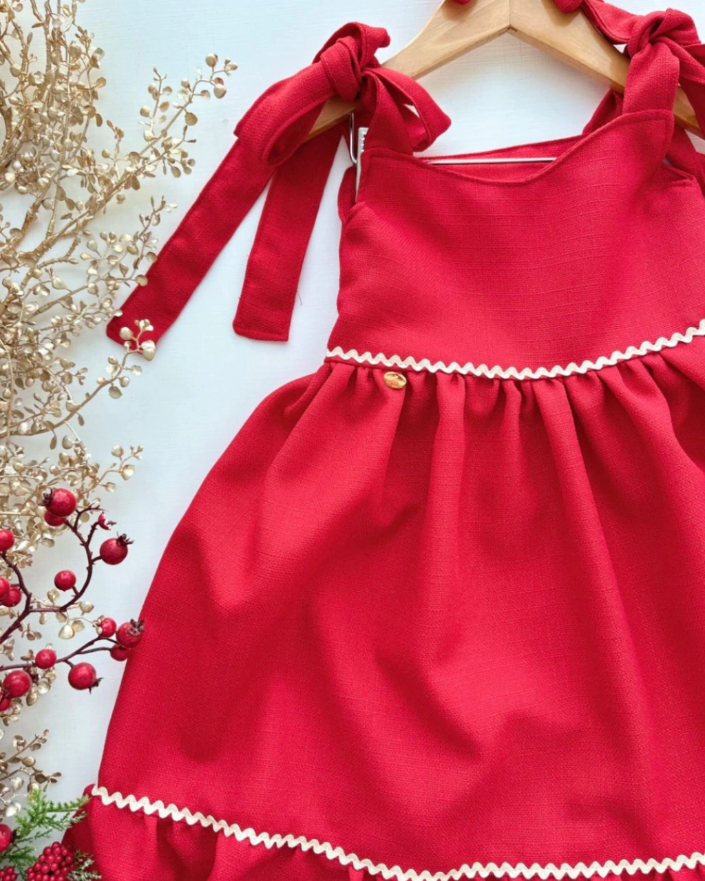 O vestido da mãe possui elastex nas costas, garantindo um ajuste perfeito do corpo, enquanto a versão infantil complementa a beleza da peça. Ideal para noites de Natal e ensaios em família, este conjunto promete momentos inesquecíveis.