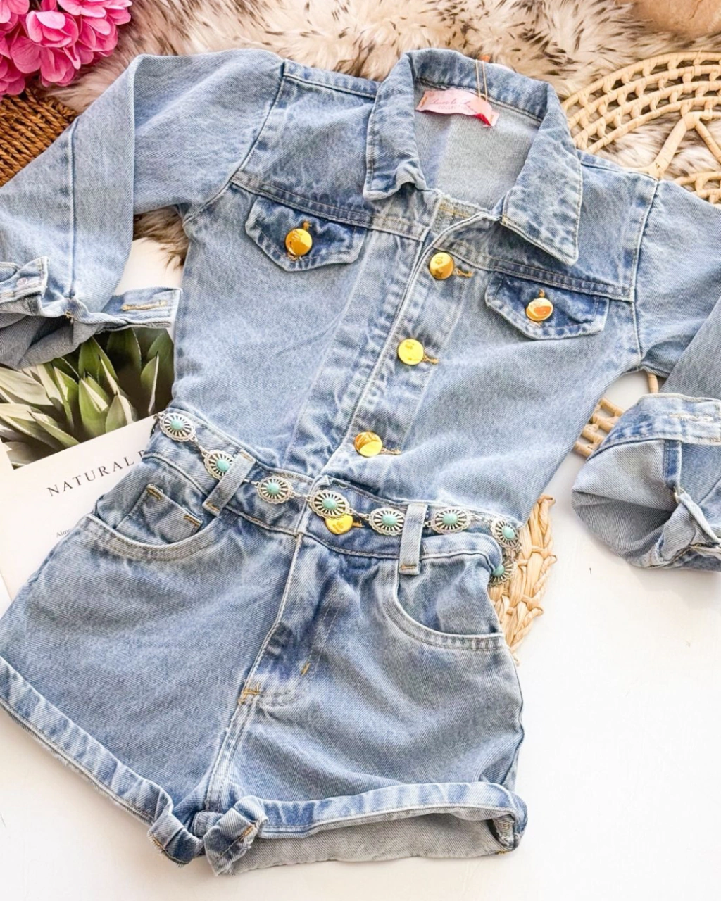 Esse macaquinho é perfeito para sua princesa, o look ideal para que elas possam se vestir, usarem a imaginação e andarem por aí com muitos estilosas. As peças podem ser usadas separadamente formando vários looks lindos!