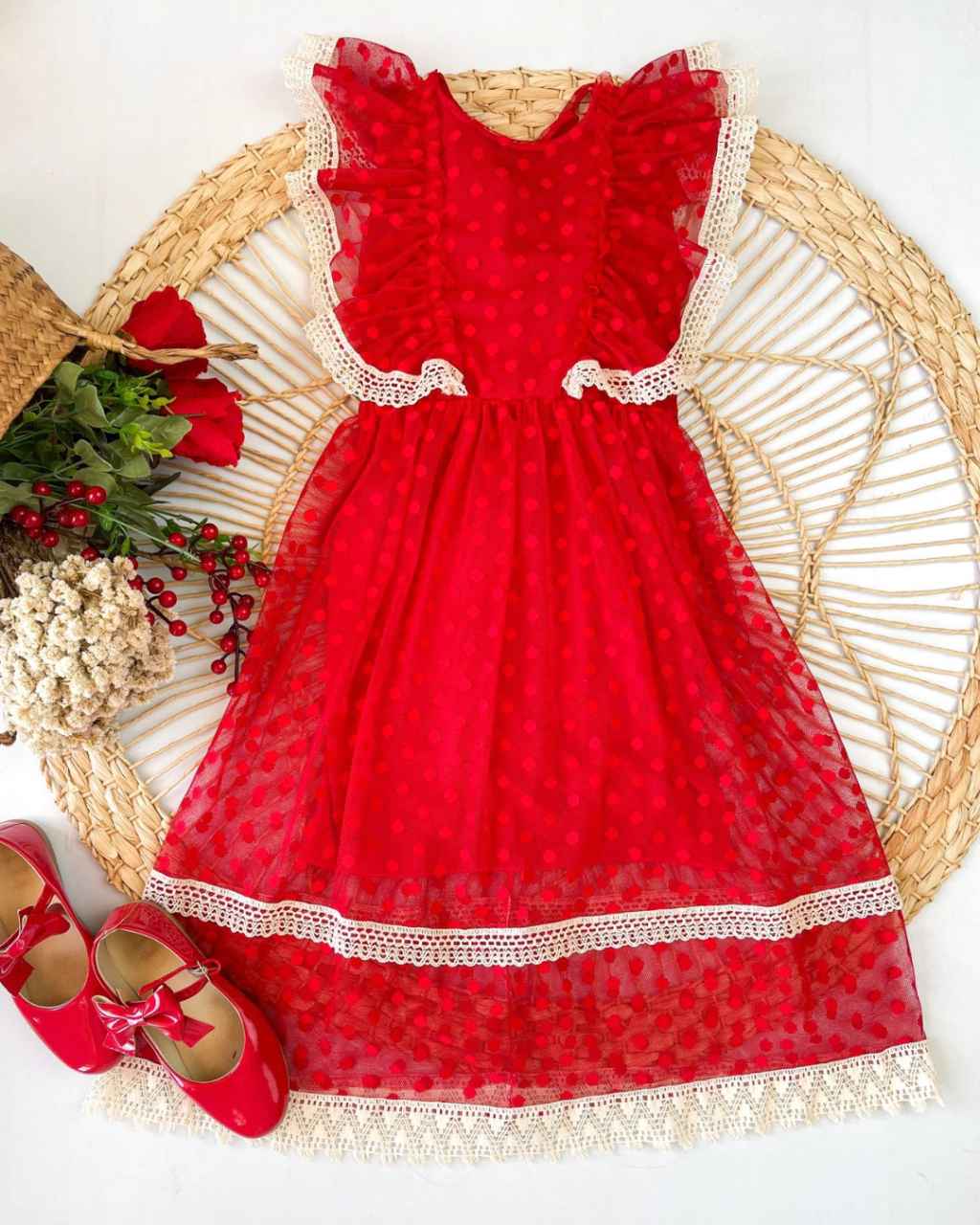 Vestido vermelho tule com renda
